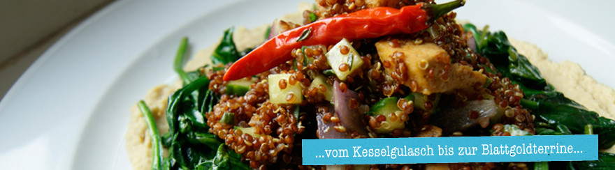 Unsere Küche ist nicht nur ein Erlebnis für überzeugte Veganer, sondern für jedermann, der Neues und Leckeres ausprobieren möchte und auch für diejenigen, die sich bis jetzt noch nicht vorstellen können, wie man ein riesiges Buffet, völlig frei von tierischen Produkten zaubern kann.